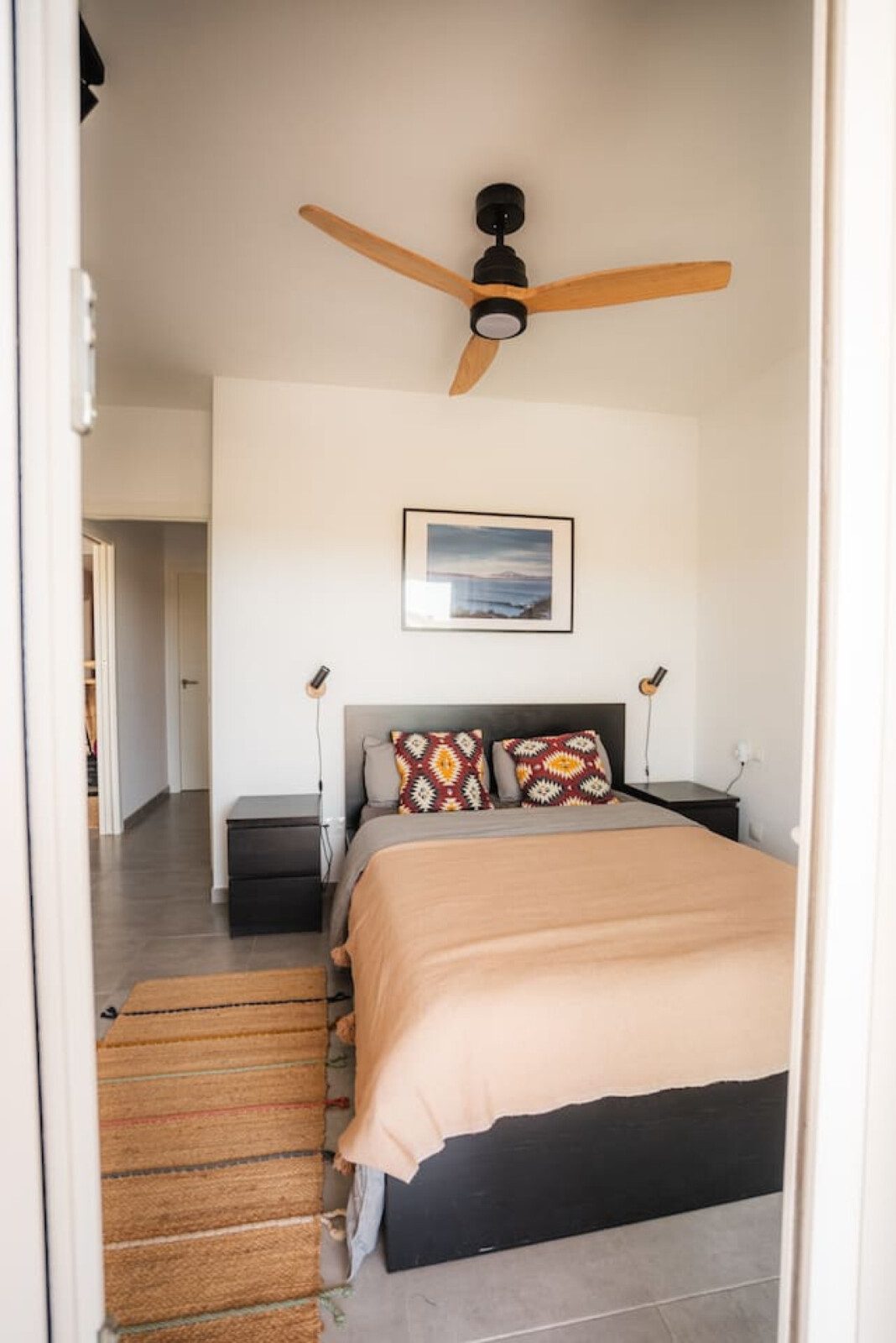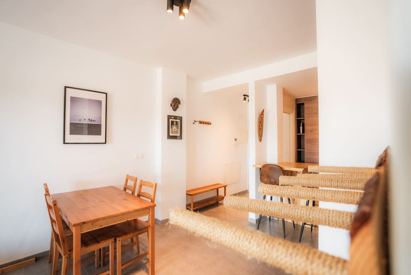Acogedor apartamento para 4 personas, distribuido en una sola planta con cocina equipada, salón-comedor con sofá, Smart TV y aire acondicionado, y gran terraza con comedor exterior y zona chill-out, ideal para relajarte y disfrutar de puestas de sol sobre el Atlántico. Cuenta con 2 dormitorios y baño completo. A 10–20 min caminando del centro histórico, playas y tiendas, con fácil acceso a carretera y zonas de interés de Tarifa.