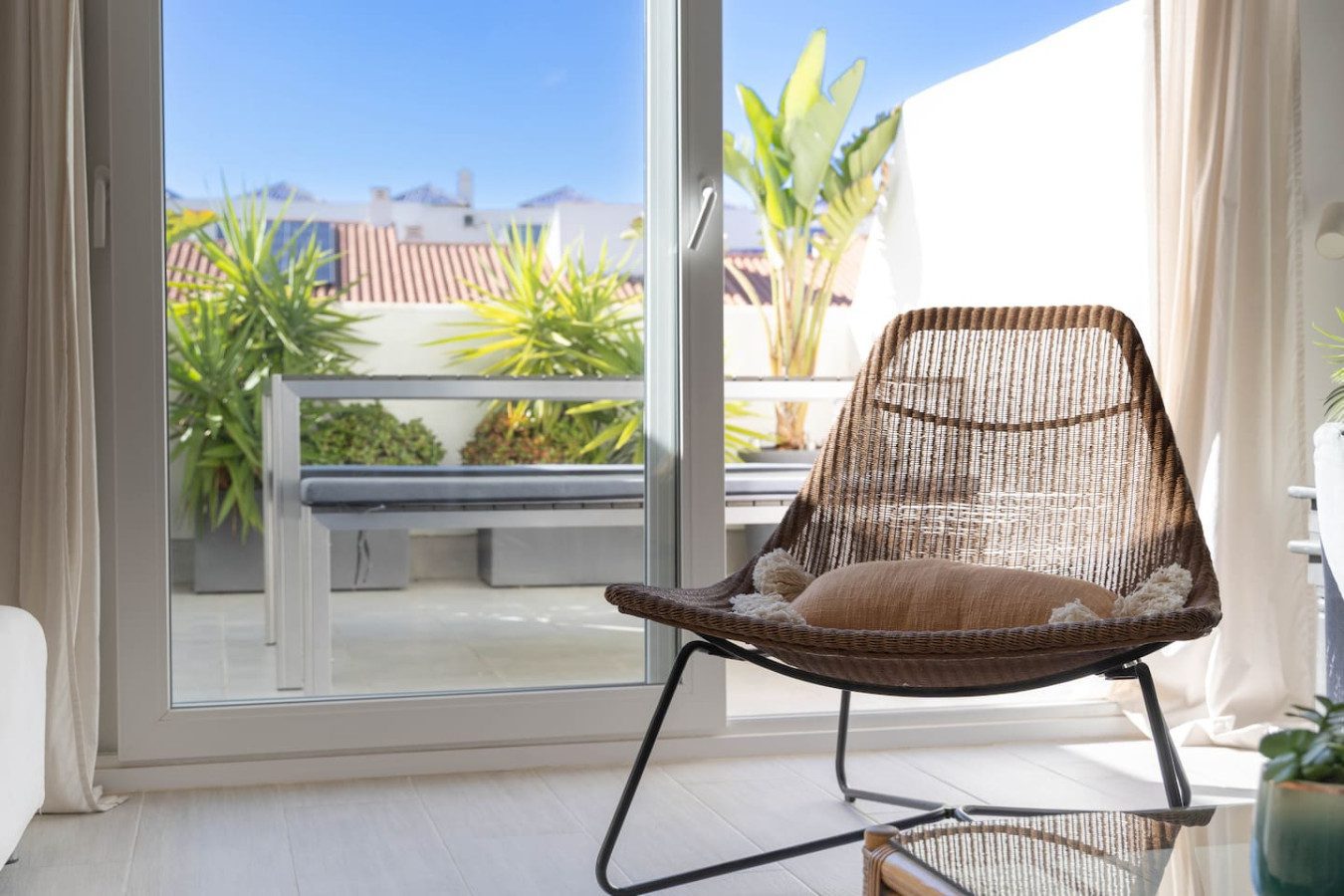 La terraza dispone de una manguera para limpiar el equipo de surf o kitesurf, perfecta para amantes de los deportes acuáticos. Además, el apartamento cuenta con aire acondicionado frío/calor en todas las estancias, lavadora, Wi-Fi rápido y cocina totalmente equipada para preparar comidas como en casa, lo que lo hace ideal para estancias largas.