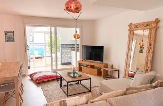 A modern house that maintains the essence of an Andalusian patio. Large, spacious, and comfortable, it features a first floor with a small full bathroom, a large, new, fully equipped kitchen, an open-plan living room with a sofa, a Smart TV, and access to the private backyard. From the entrance staircase, we access the second floor, which houses four bedrooms, a small patio balcony, and a second full bathroom. The garage door has a permanent driveway that can be used for a car.