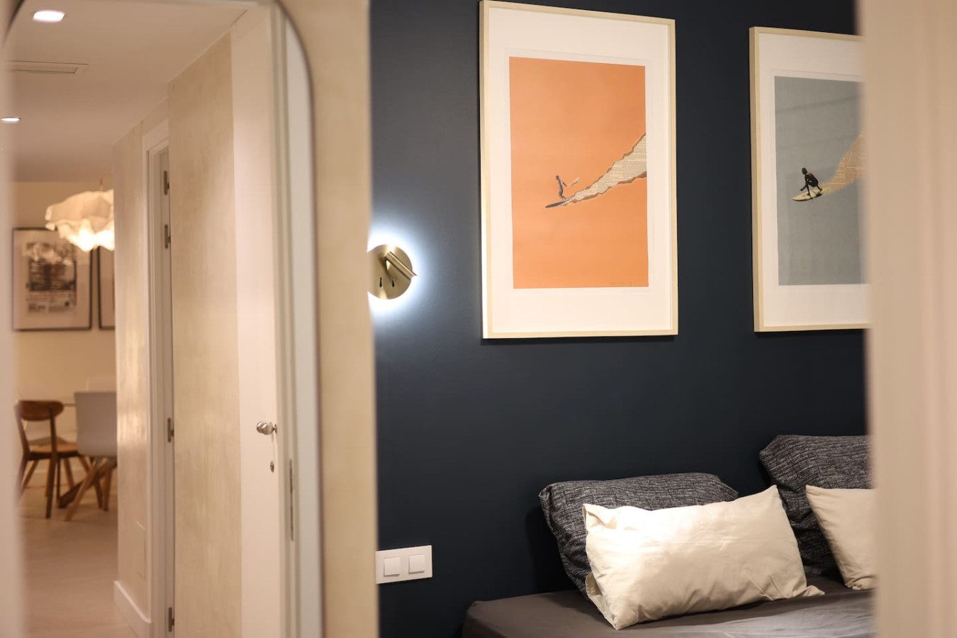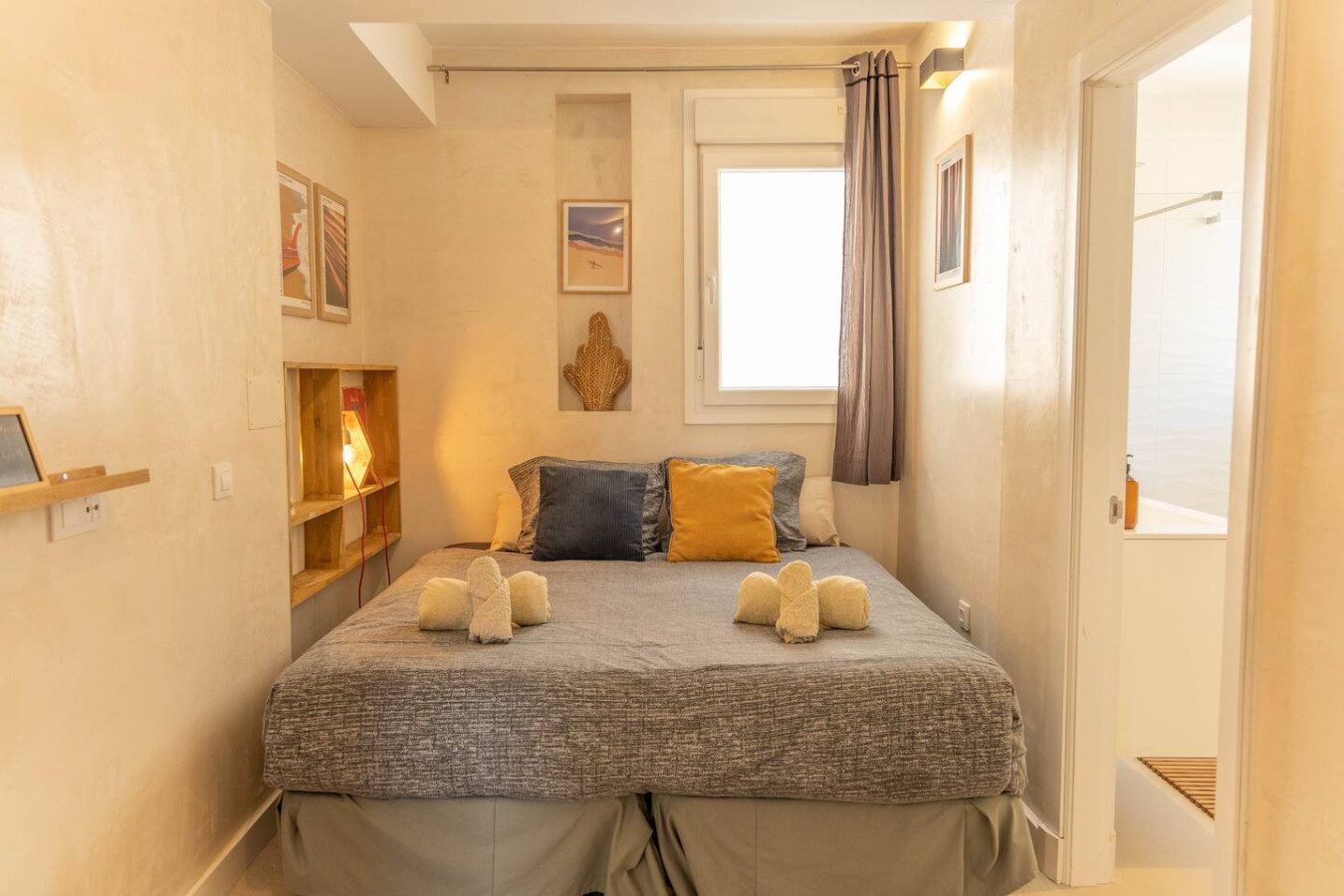 El apartamento se encuentra en una tercera planta y se distribuye en un único nivel, ofreciendo un espacio cómodo y funcional. Al entrar, nos recibe la primera habitación con cama king size de 180 cm, baño completo privado con plato de ducha, armario empotrado y Smart TV.