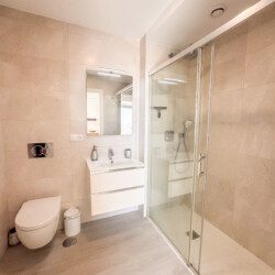 Guests enjoy exclusive access to the entire apartment, which includes a private terrace and indoor parking space. It features hot/cold air conditioning in all rooms and is located in a building with common areas and an elevator, allowing easy access from the garage.
