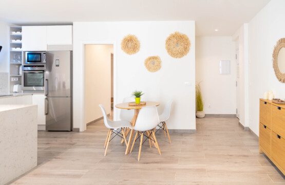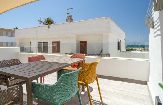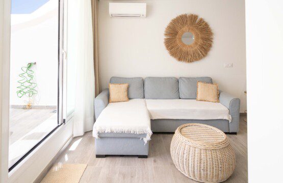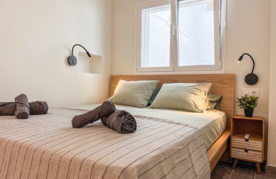This apartment is completely renovated and brand new: it consists of two bedrooms, one with a double bed and the other with two queen-size beds. Both are furnished and have wardrobes for storing clothes and a ceiling fan. There is also a bathroom with a shower and a laundry room. There is a large, bright living room with views of the sea, a fully equipped and brand-new kitchen, and a large, furnished terrace for spending pleasant family evenings. The complex has a communal pool that is open only during the summer season.