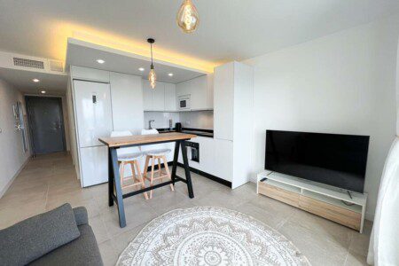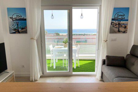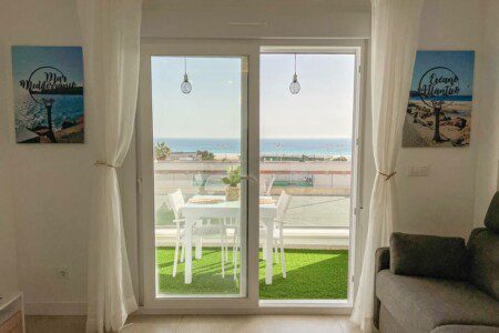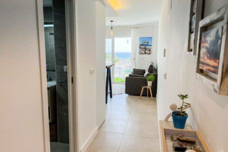 This beautiful apartment is ideal for a perfect getaway to Tarifa. It features a bedroom with a double bed, a full bathroom with a shower, a fully equipped kitchen with a high-top table overlooking the large living room window, a sofa bed, and a Smart TV.
