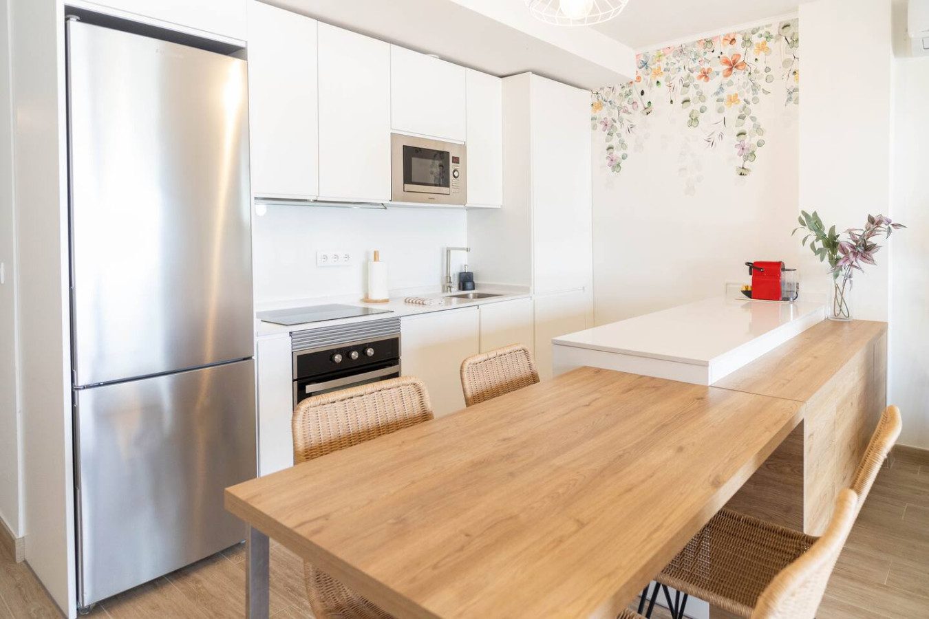 La terraza dispone de una manguera para limpiar el equipo de surf o kitesurf, perfecta para amantes de los deportes acuáticos. Además, el apartamento cuenta con aire acondicionado frío/calor en todas las estancias, lavadora, Wi-Fi rápido y cocina totalmente equipada para preparar comidas como en casa, lo que lo hace ideal para estancias largas.