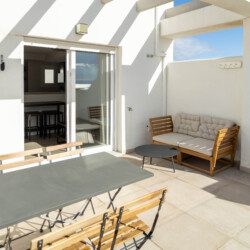 Este ático en la esquina del edificio combina la ubicación céntrica con vistas despejadas gracias a los campos deportivos frente a él, creando una sensación de amplitud y libertad. La terraza ofrece vistas al océano Atlántico y a la playa de Los Lances, perfectas para atardeceres inolvidables o para que los amantes del kitesurf observen las condiciones del viento y del mar en todo momento.