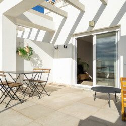 Ático moderno y luminoso con dos dormitorios, dos baños y una terraza con vistas panorámicas desde la Playa de los Lances hasta la duna de Punta Paloma, ideales para atardeceres espectaculares. Situado en pleno centro, permite llegar a cualquier punto de Tarifa en 5–10 minutos a pie, con supermercados, tiendas y restaurantes al lado. Cuenta con cocina equipada, parking subterráneo con ascensor, aire acondicionado y Wi-Fi rápido para una estancia cómoda en familia.