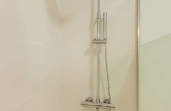 La habitación principal cuenta con una cama de matrimonio de 160×200 cm y amplio armario, mientras que la segunda habitación ofrece dos camas individuales de 90×200 cm, perfecta para niños o amigos, también con espacio de almacenamiento. El baño dispone de una práctica ducha y un lavabo independiente.