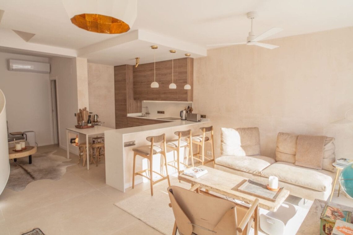 Un apartamento lleno de sensibilidad, donde maderas claras, textiles naturales y tonos suaves crean un ambiente acogedor desde el primer momento. Cada detalle está elegido con intención, como en un hogar vivido y cuidado. Diseñado por una pareja de decoradores con un gusto exquisito, se encuentra a solo 2 minutos de la playa de Los Lances y es ideal para familias o amantes del kitesurf que quieran disfrutar del mar desde una casa cómoda y con mucho encanto.