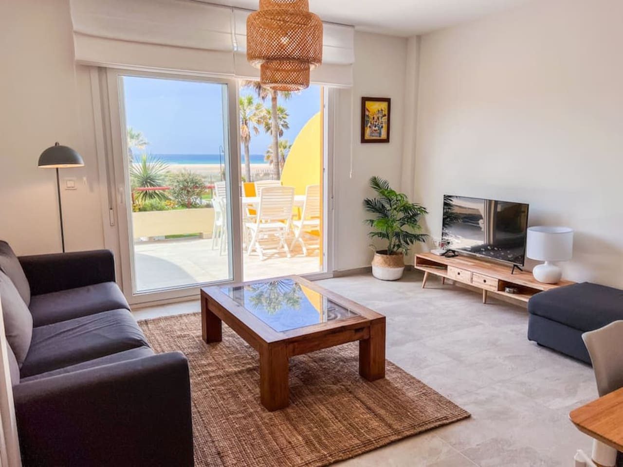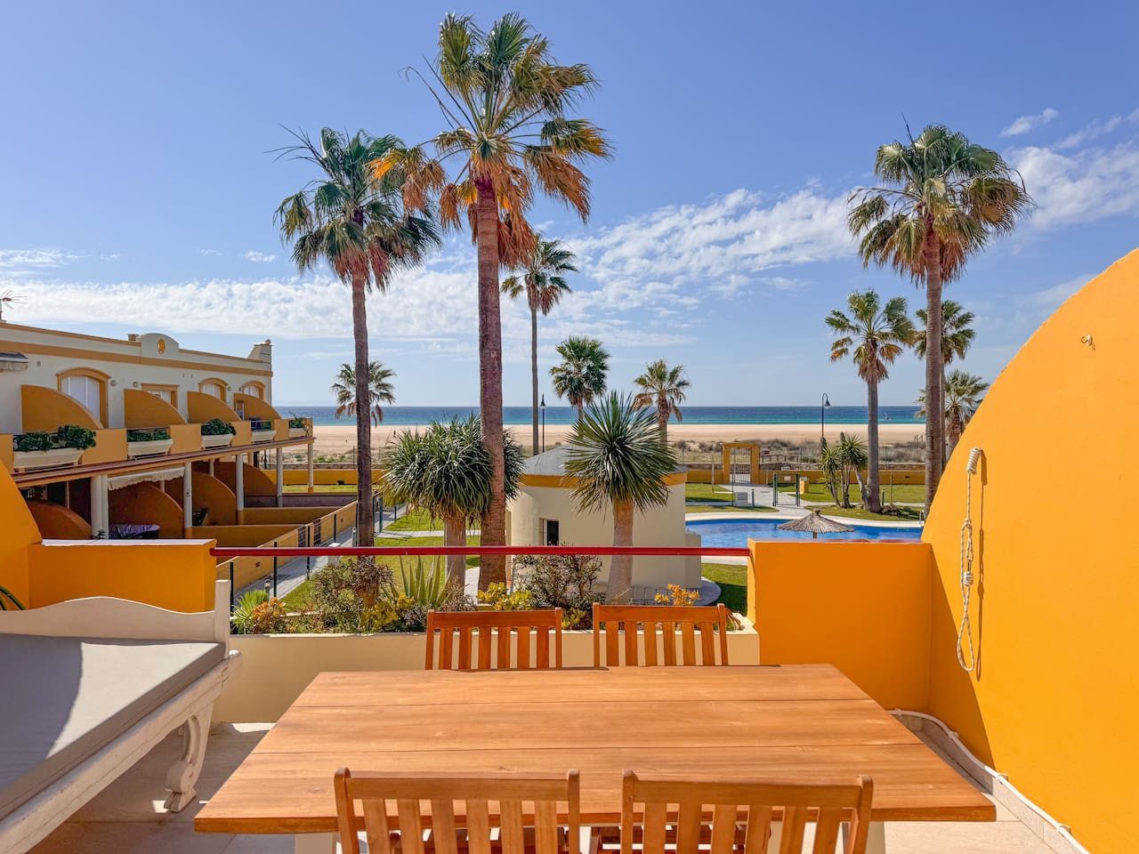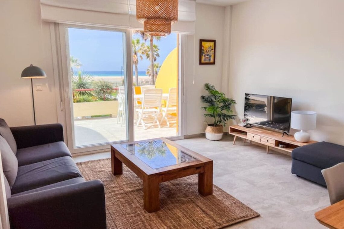 Despierta cada mañana con el sonido de las olas y unas vistas increíbles a la piscina, la zona ajardinada y la playa de Los Lances. Este apartamento en primera línea es el refugio perfecto para familias que buscan comodidad y una ubicación privilegiada. Con capacidad para 4 personas, cuenta con dos dormitorios, cocina equipada, Smart TV, Wi-Fi y aire acondicionado/calefacción. Relájate en la piscina comunitaria (de temporada) o simplemente contempla el atardecer sobre el mar desde tu terraza.