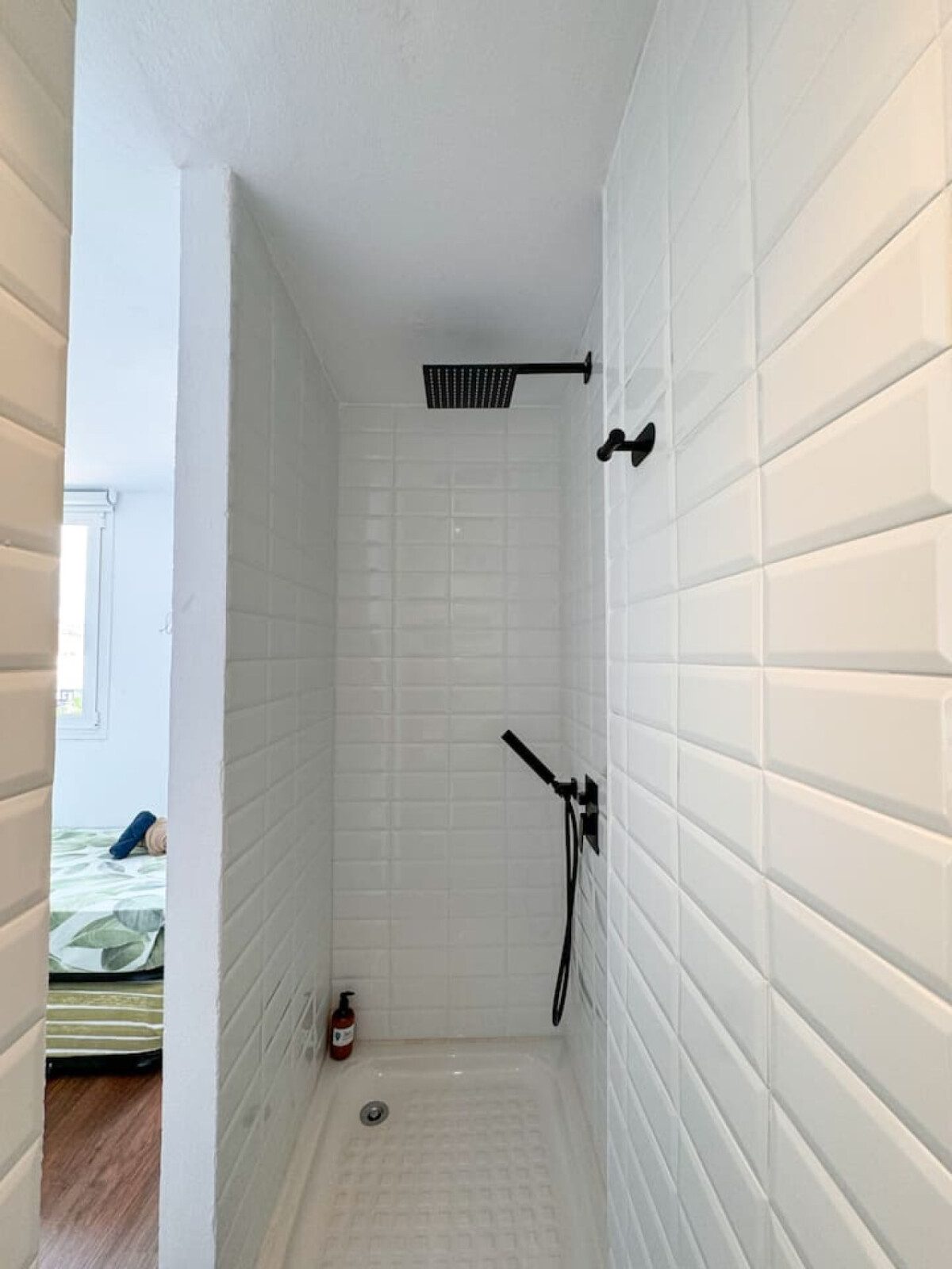 Accedemos a la primera planta por escaleras, donde se encuentran dos dormitorios con camas de matrimonio de 160 cm. Un dormitorio da al interior del edificio comunitario con su terracita, mientras que el otro se orienta hacia la calle. Ambos cuentan con armarios para guardar ropa y maletas, y comparten un baño con plato de ducha. En la tercera planta encontramos la tercera habitación con cama individual y su ducha y lavabo. También ofrece una terraza, perfecta para tender ropa o disfrutar de algo de vistas al mar.