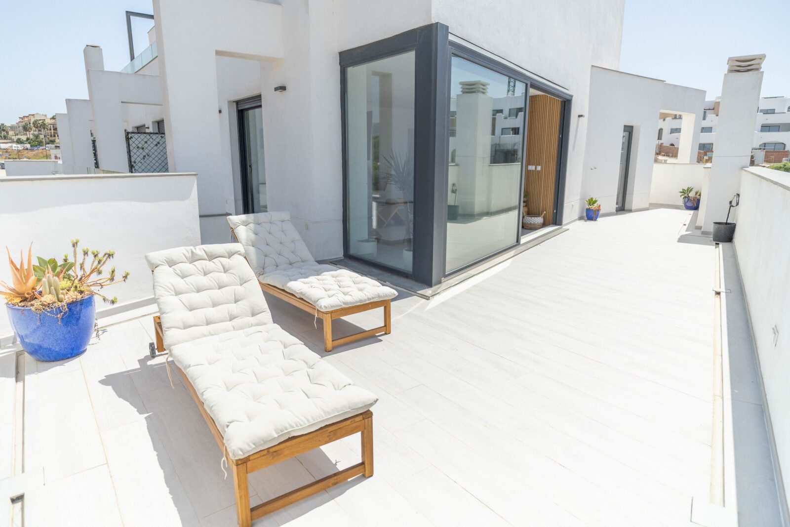 La joya de la casa es su terraza perimetral, que rodea toda la vivienda y ofrece privacidad, vistas abiertas y puestas de sol inolvidables.
