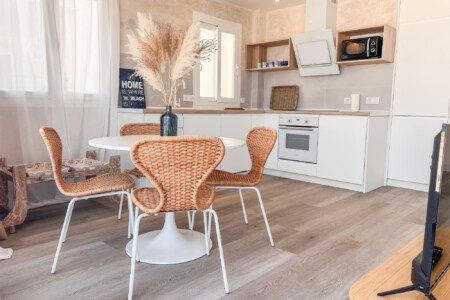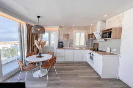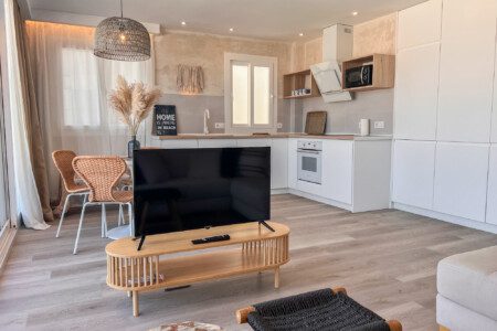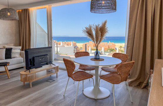 Este apartamento está totalmente reformado, nuevo a estrenar. Un lugar precioso diseñado y decorado con mucho cariño para que el espacio al completo sea cómodo, amplio y tranquilo. Se distribuye en una sola planta: dos dormitorios con aire acondicionado de sistema split, ventiladores de techo, camas de 160cm y 150cm, y armarios en ambos para poder almacenar tu ropa de viaje. El baño es completo con plato de ducha. En la sala de estar se encuentra la cocina, grande y moderna totalmente equipada, mesa de comedor con capacidad para 4 personas, el sofá de 6 plazas y una televisión Smart TV que junto con la fibra de alta velocidad serán el combo perfecto para tus momentos de entretenimiento, también hay aire acondicionado de frío y calor en el salón. Y su terraza, a espaldas del levante, con vistas a prácticamente toda la playa de Los Lances y la duna de Punta Paloma, donde tomar un café por la mañana o brindar con un vino viendo los mejores atardeceres de toda la costa de la Luz, se volverá esencial en tu estancia.