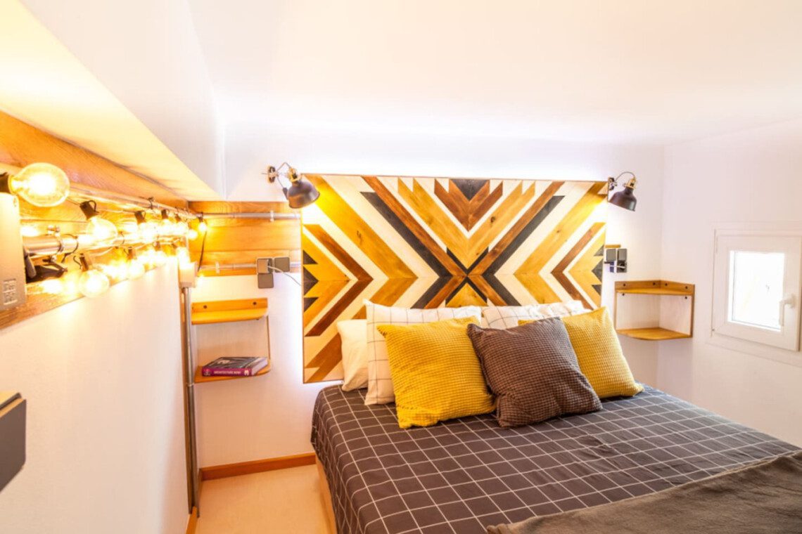 Hay que subir un tramo de escaleras estrechas y empinadas para acceder a la cama.